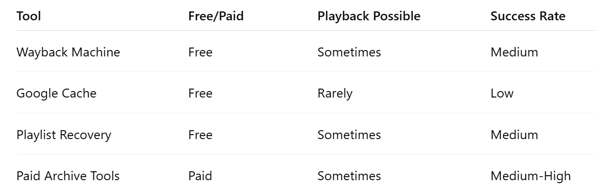 This works best for videos deleted within days or weeks, but cached pages often lose video playback capability quickly.
